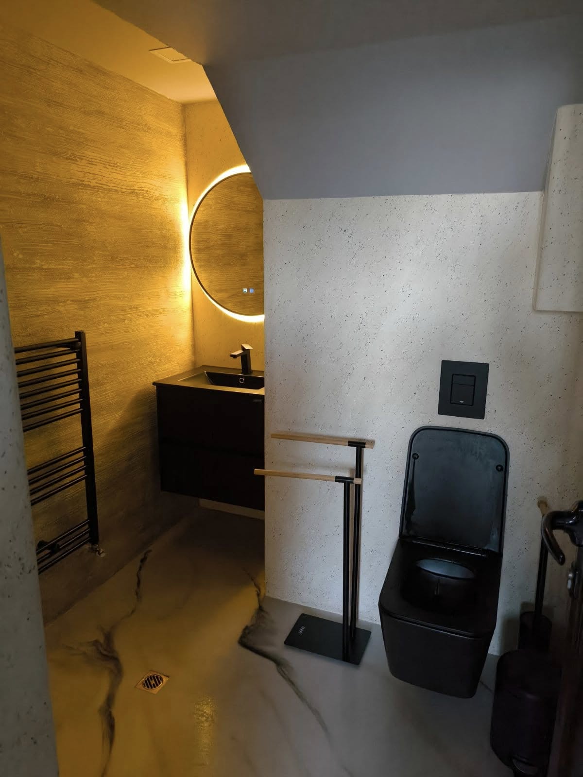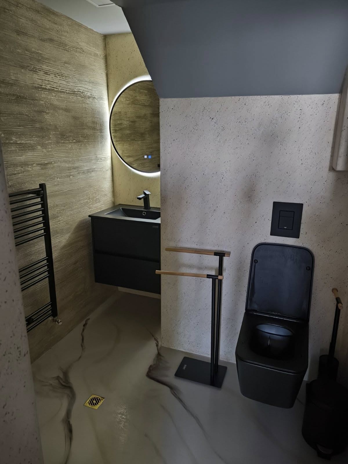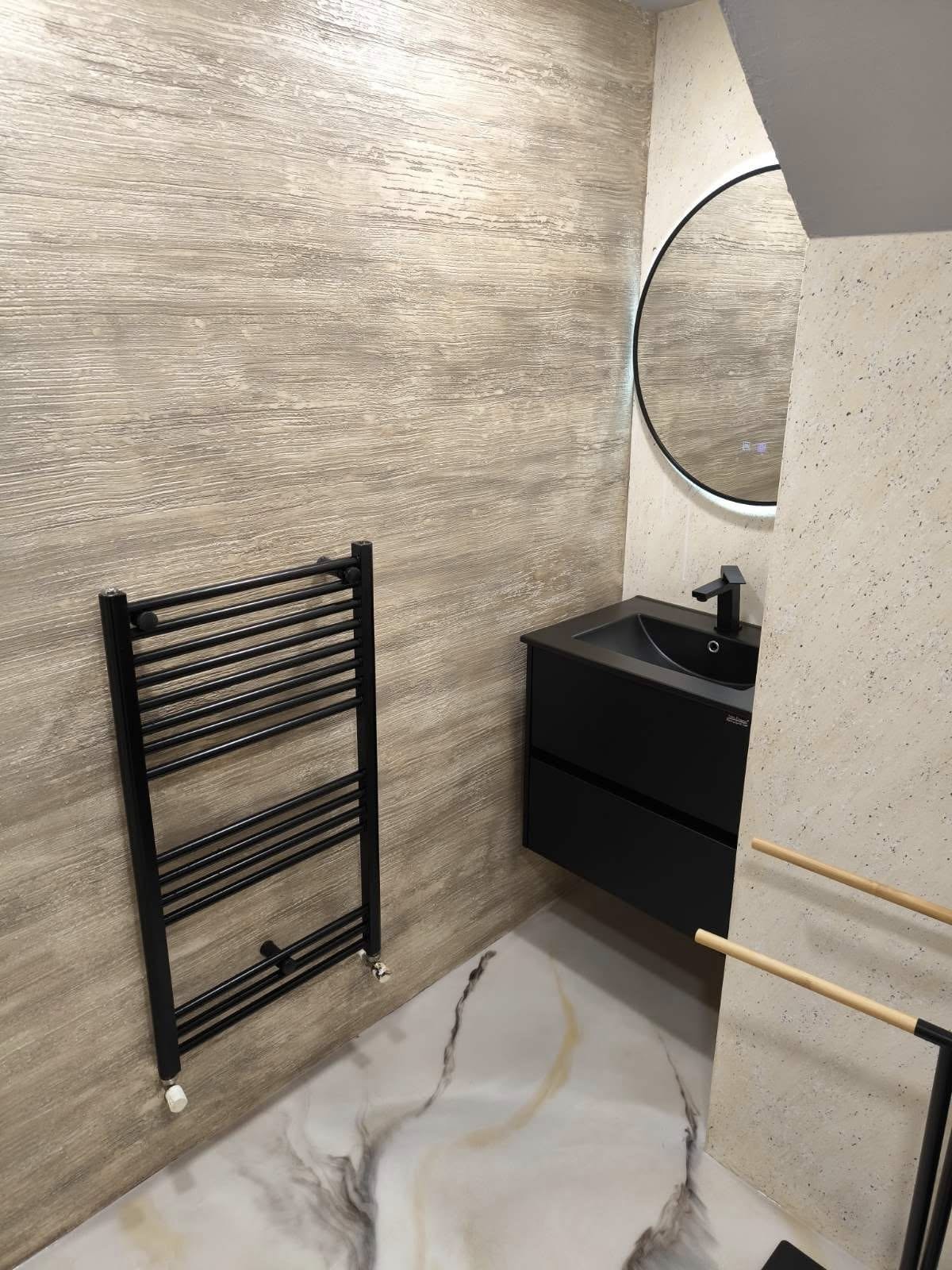 Липсата на фуги осигури безпроблемна поддръжка и висока естетика, а епоксидната повърхност допълни модерния интериорен дизайн на дома. Изключително лесна поддръжка, антибактериална и уютна.
