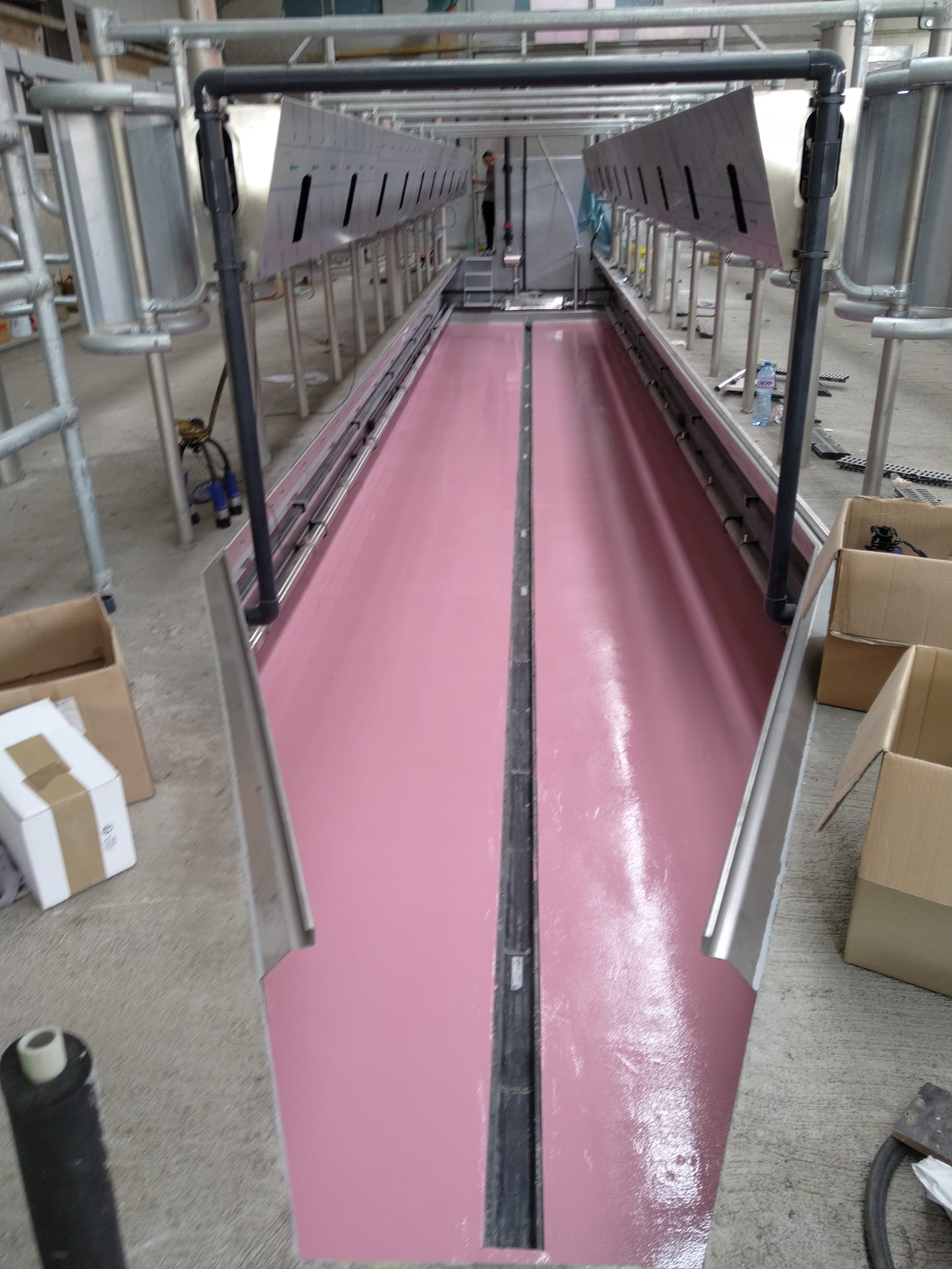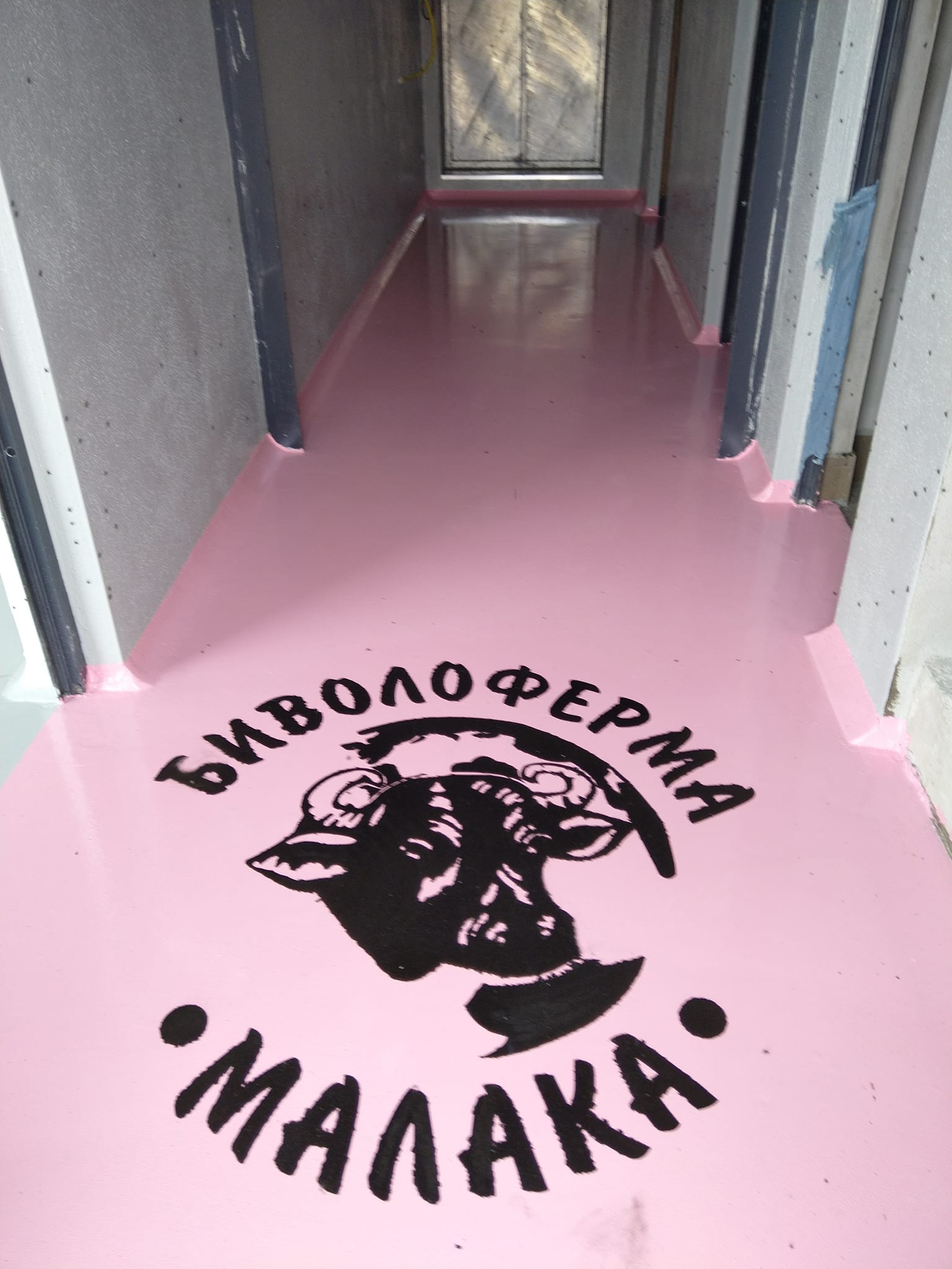 Представям ви един интересен проект на Биволферма „Малака“. Полиуретанов розов под и сиви стени за безупречна чистота в доилното помещение